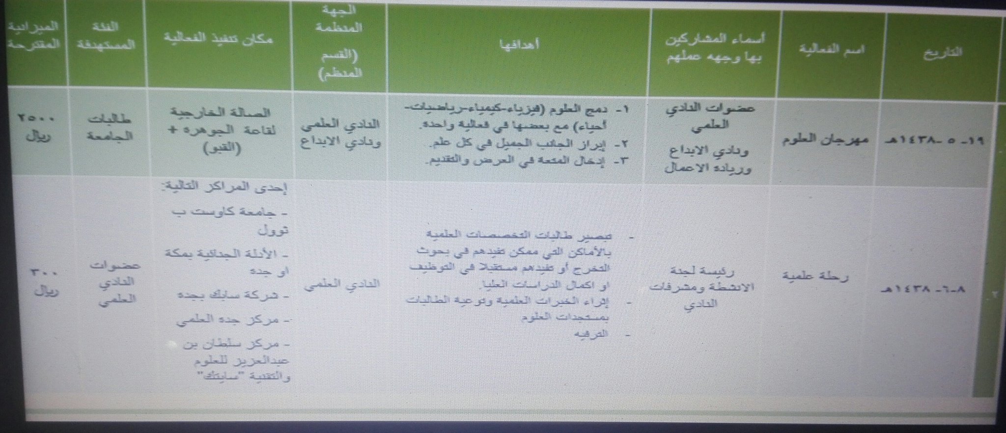 خطة النادي العلمي 1438. مسابقة الخيال العلمي كيف نجعل الطلاب يقبلون على التسجيل في النادي العلمي دواعي التسجيل عند غالبية الطلبة. 15 1 1438 14 2 1438هـ توثيق الدوري. تنمية الوعي العلمي للطلاب و ترغيبهم في العلوم والتخصص فيها. 04 مسارات النادي العلمي.