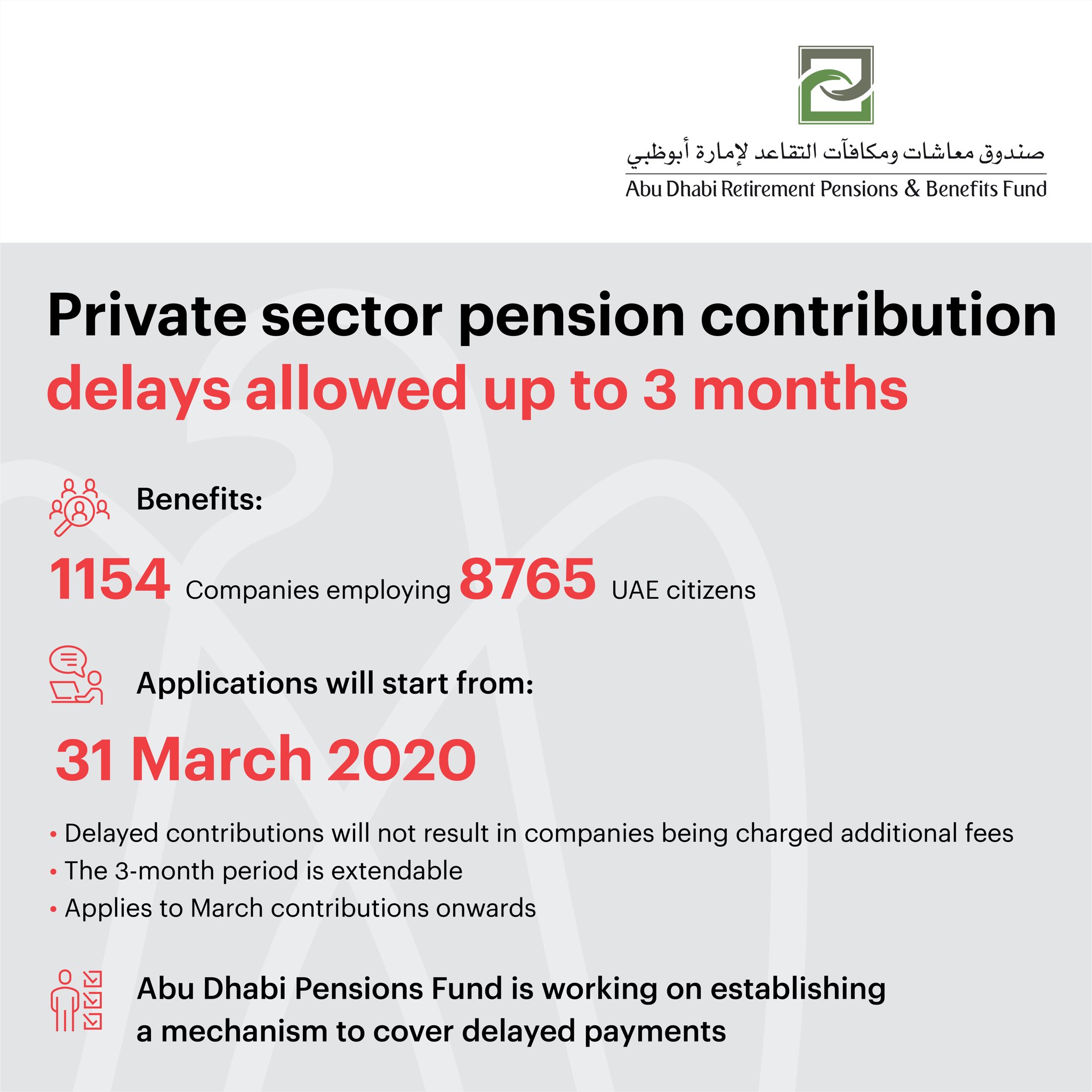 مكتب أبوظبي الإعلامي On Twitter Adpension Is Allowing Private Sector Companies A Three Month Delay On Pension Contributions On An Extendable Basis The Decision Is In Line With Government Directives To Support The