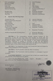Proclamation No 845 Declaring The Regular Holidays And Special Non Working Days For The Year 2020 Presidential Communications Operations Office