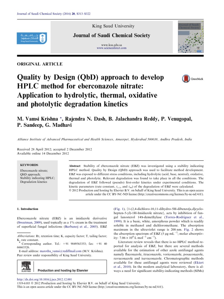 Quality By Design Qbd Approach To Develop Hplc Method For Eberconazole Nitrate Application To Hydrolytic Thermal Oxidative And Photolytic Degradation Kinetics Detection Limit High Performance Liquid Chromatography